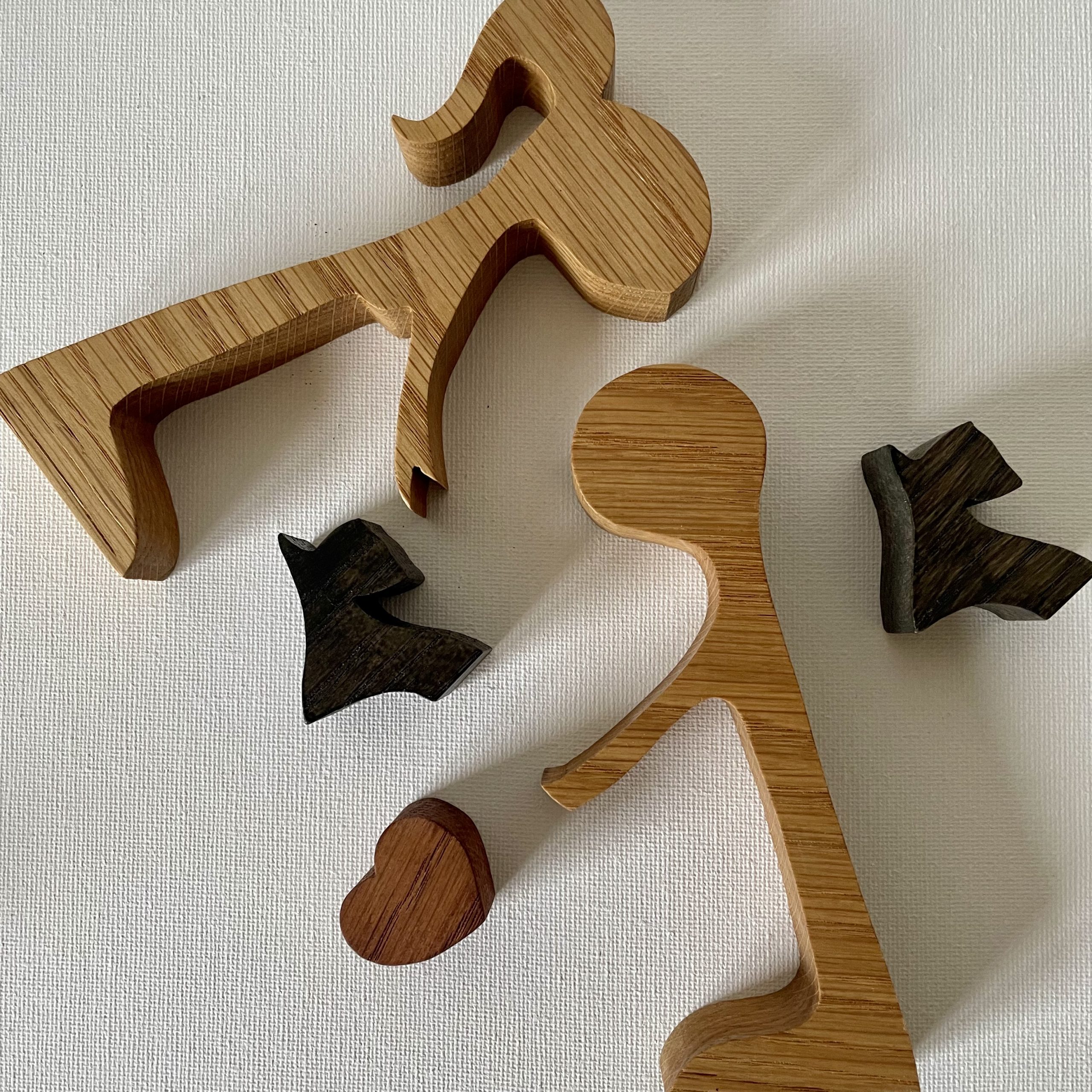 Handcrafted Oak Couple with Scottie Dogs – Wooden Love Sculpture