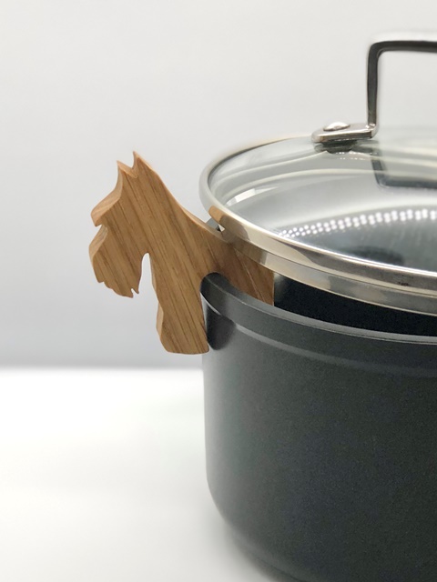 Bring charm and craftsmanship to your kitchen with this delightful Scottie dog–shaped pan lid holder, handcrafted from solid oak.